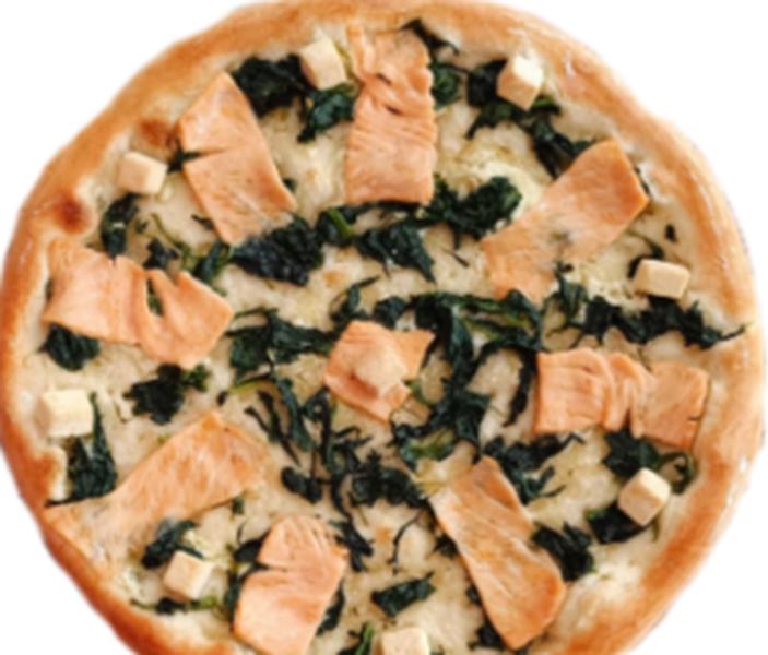 Состав: Тесто постное, соус майонезный постный, шпинат, лосось, сыр тофу, зелень
