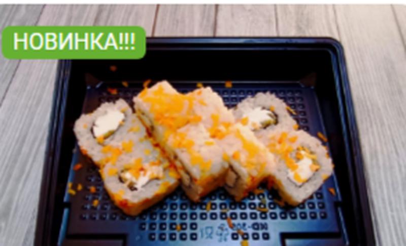 Состав: Нори, рис, сыр творожный, огурец маринованный, лук фри